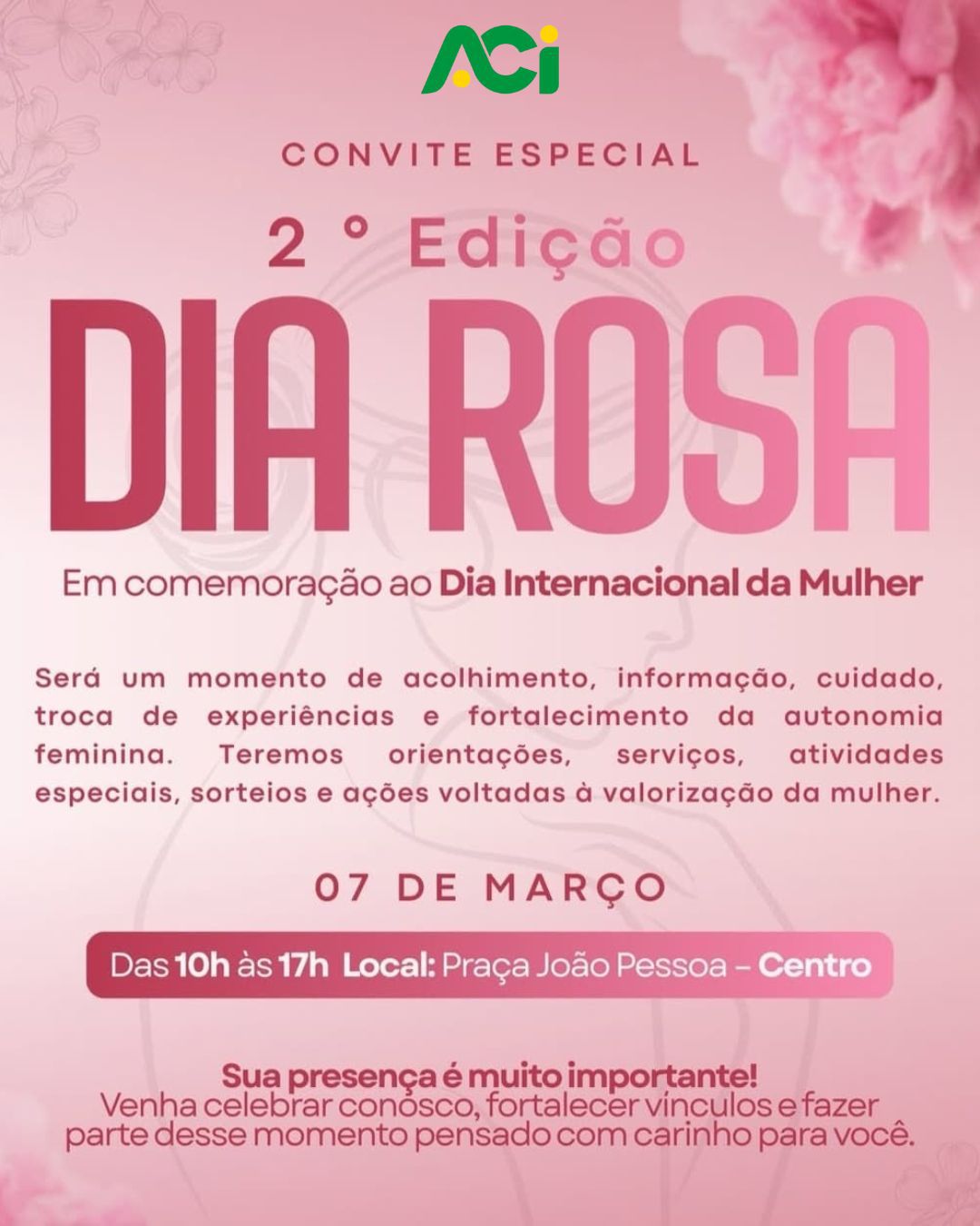 Neste sábado, a ACI Rio Negro estará apoiando o Dia Rosa, um evento especial dedicado à conscientização e ao autocuidado.